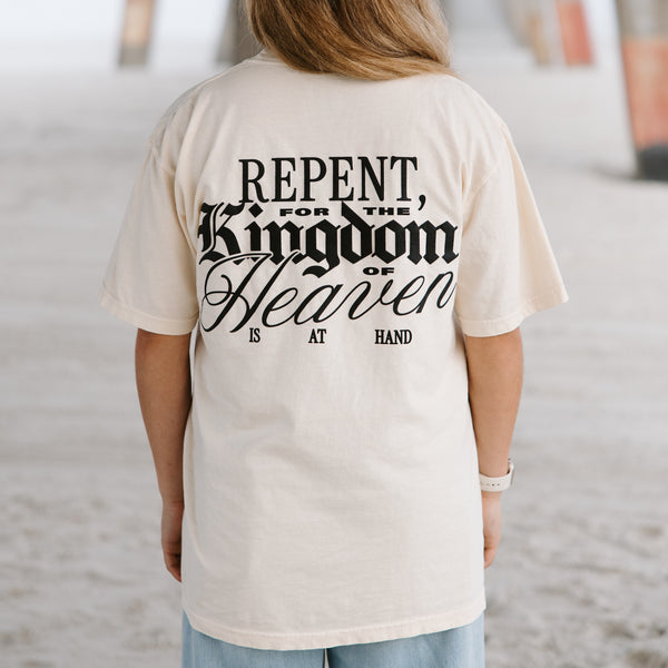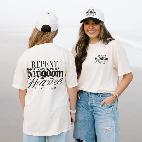 Vision 26 T-shirt in ivory. Printed design with puff detail on back. Loop label stitched at the bottom.